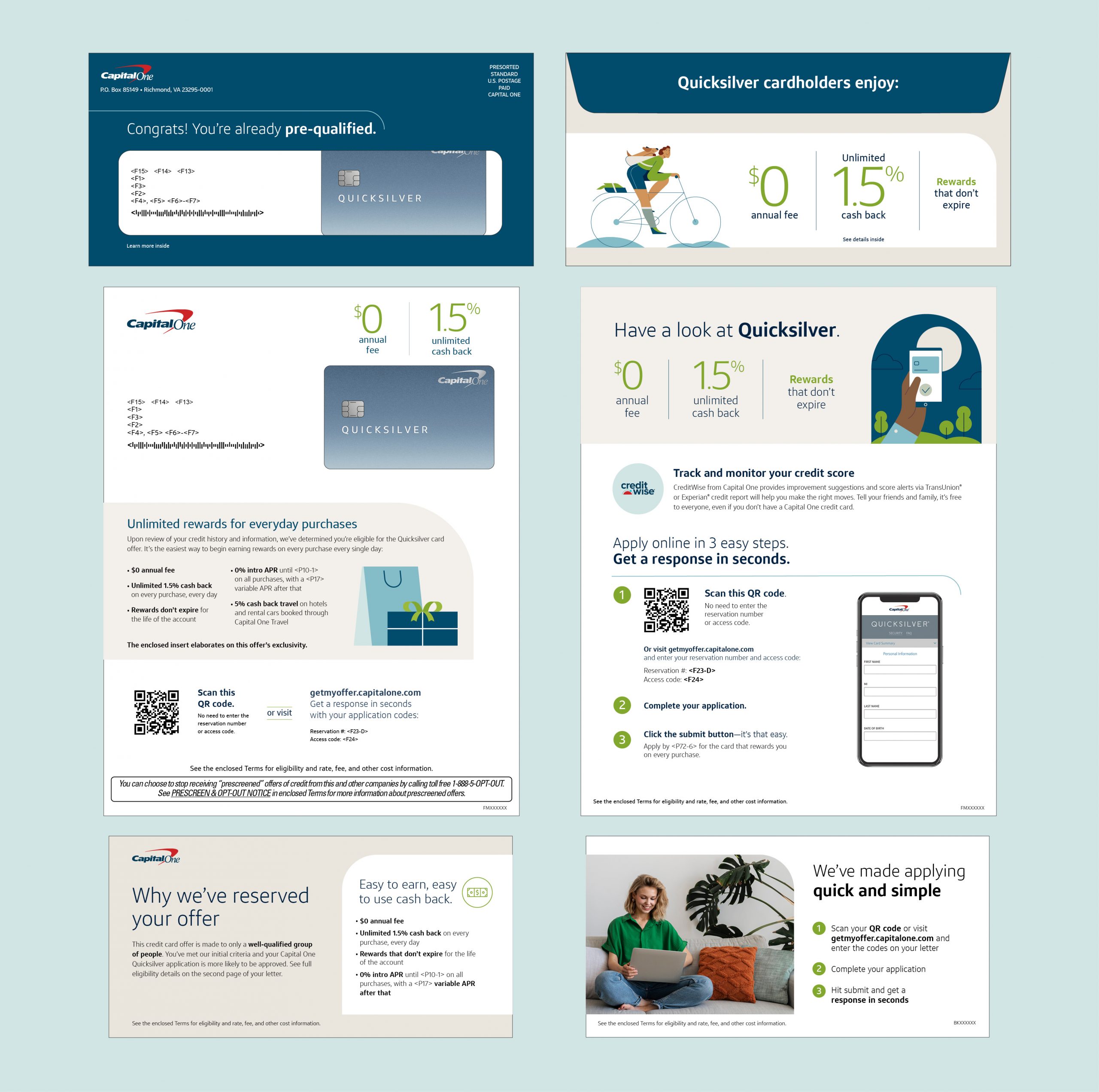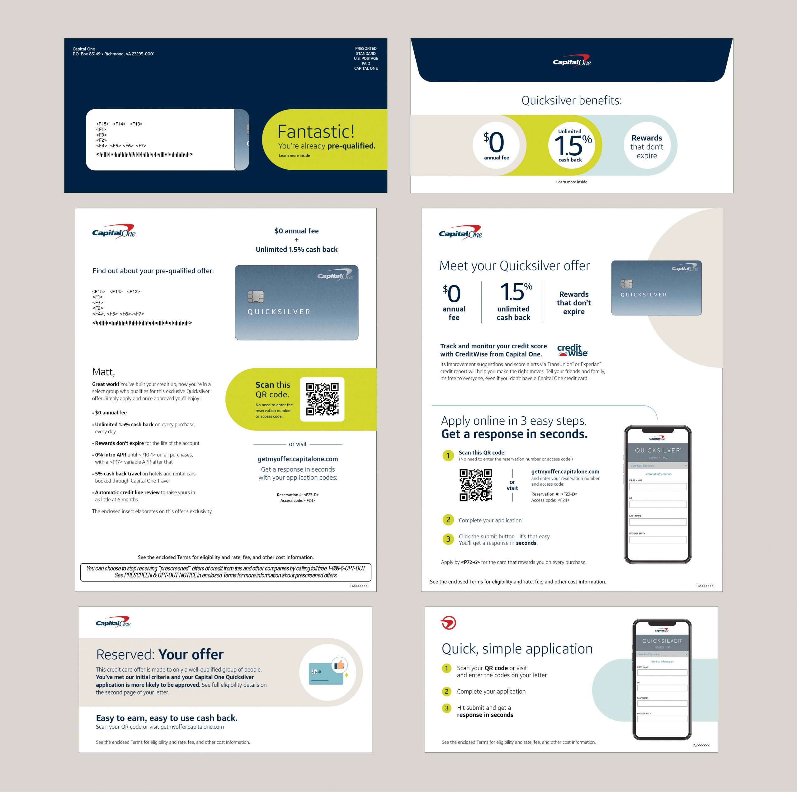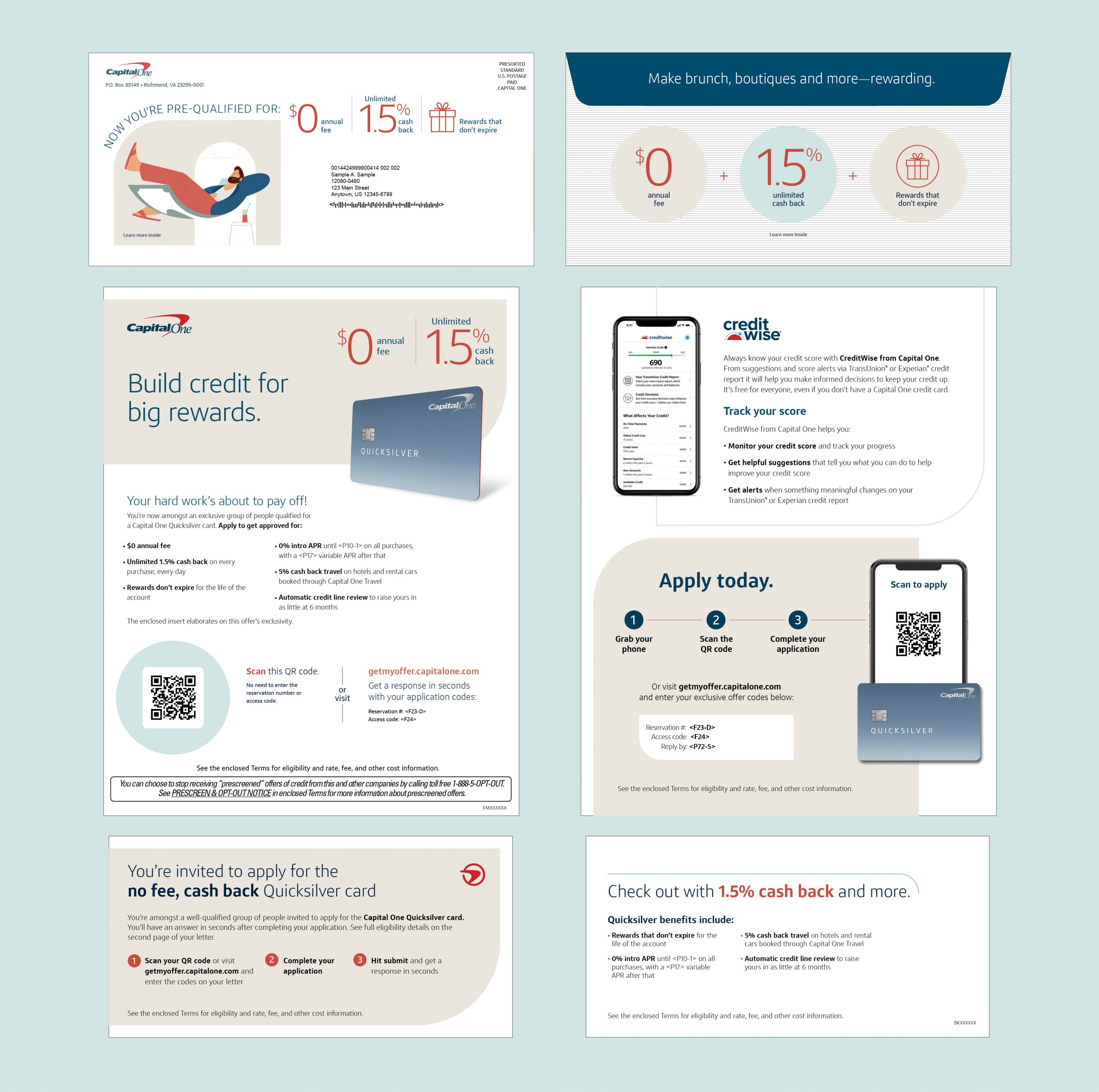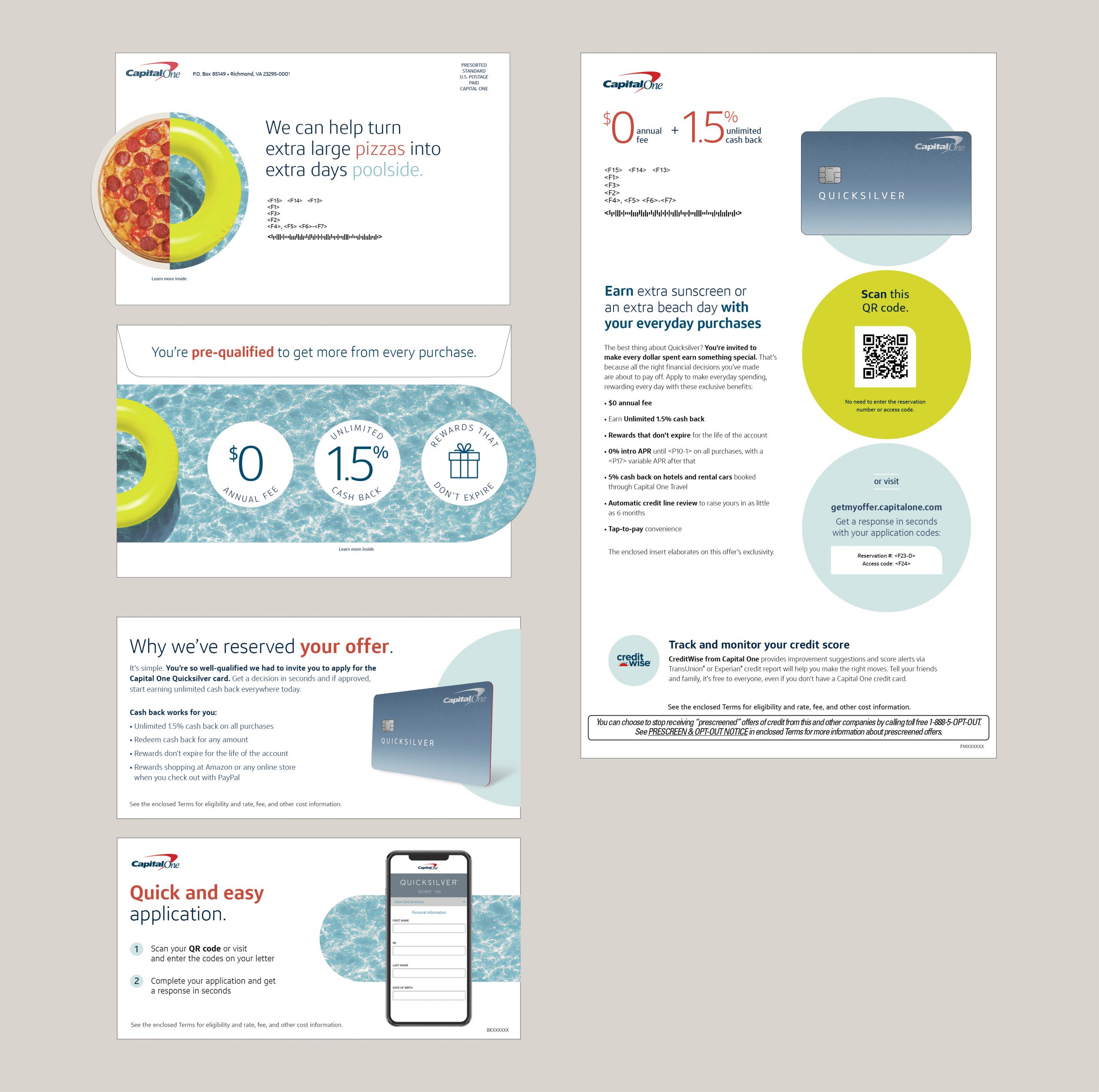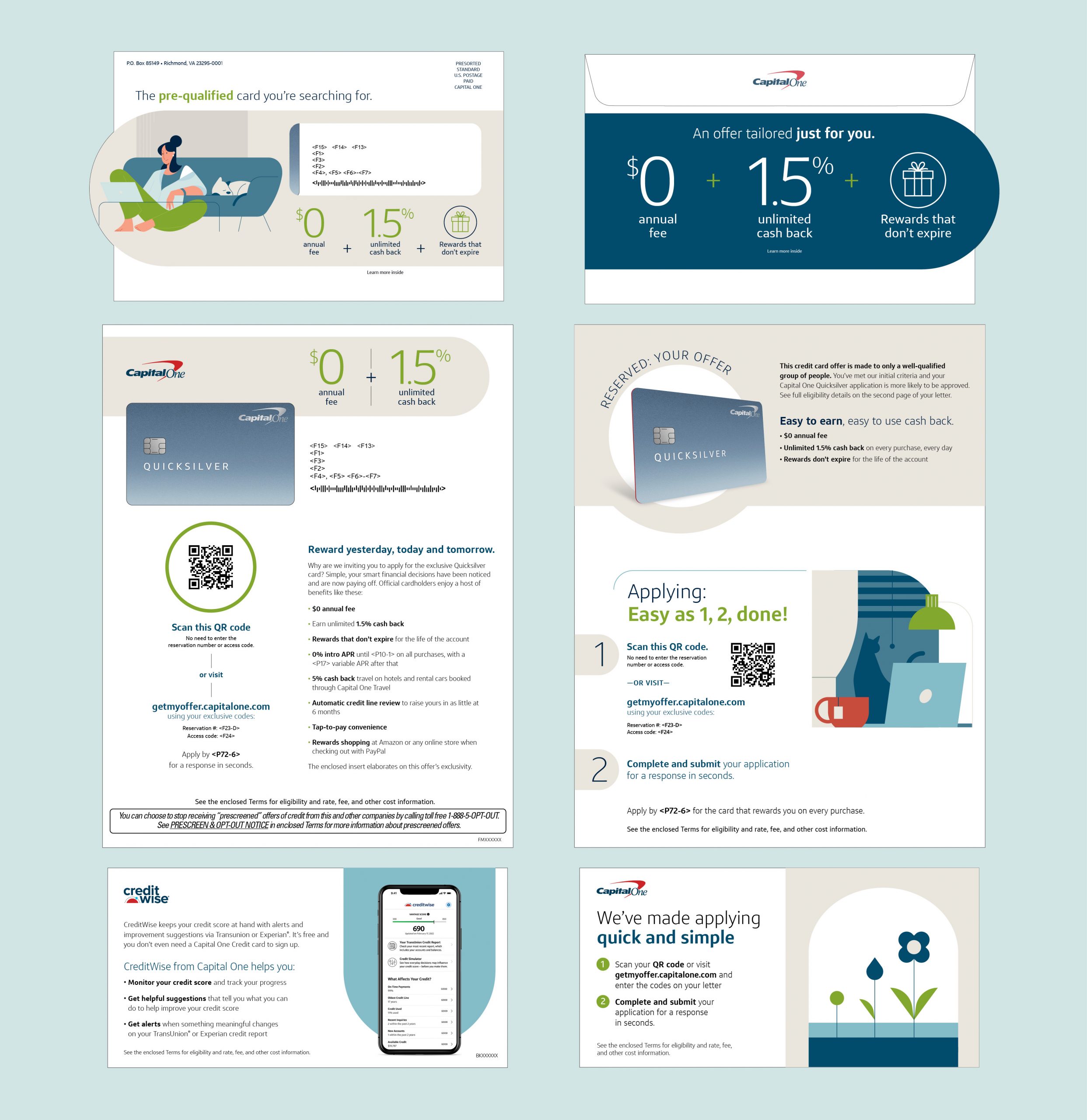 Outcome: Delivered kit options that balanced clear messaging and brand visuals within layout constraints, ensuring consistency across Capital One’s direct mail communications.