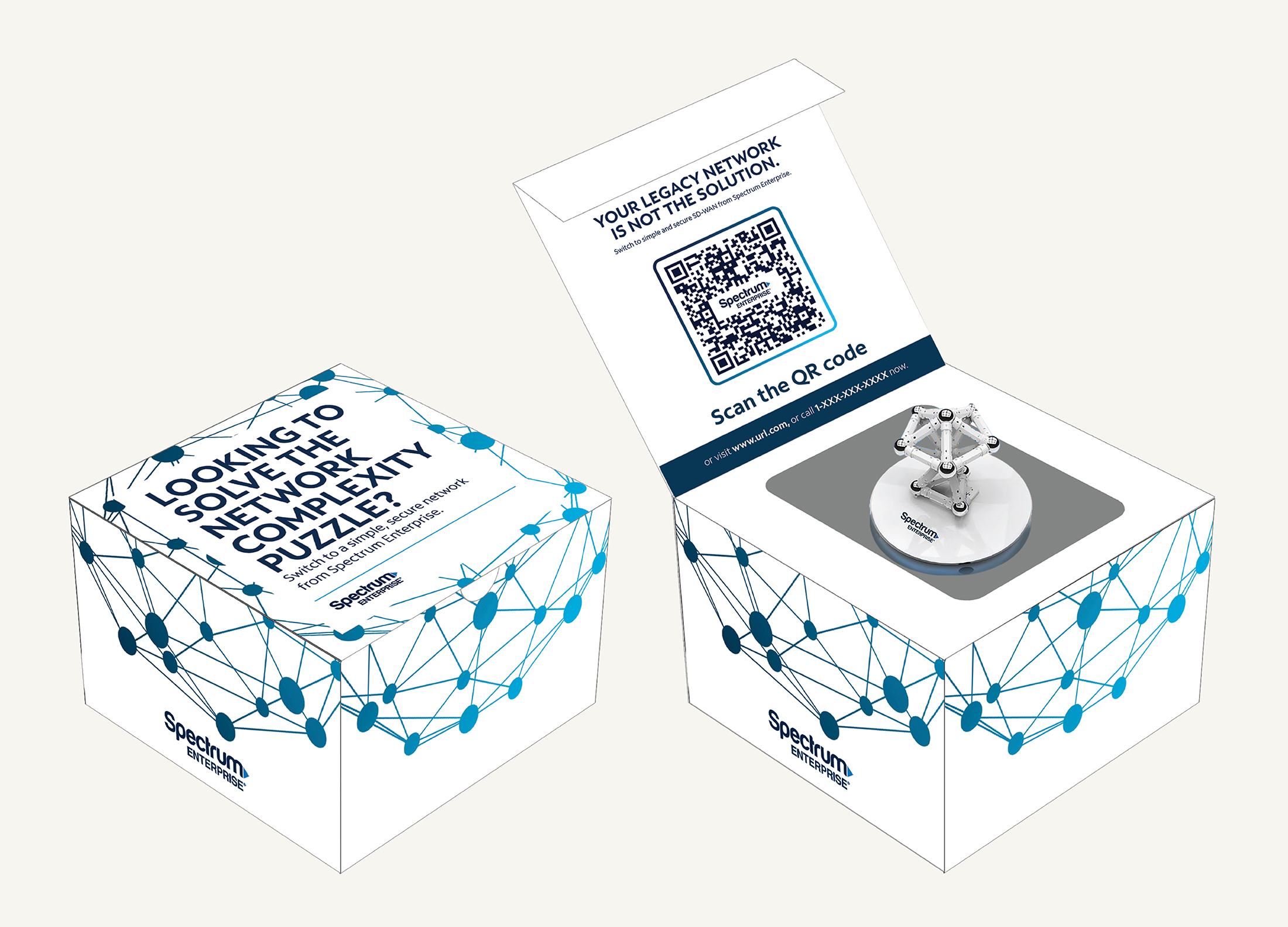 Led design for a premium direct mail piece promoting SD-WAN: a custom box containing a branded 3D puzzle that served as a metaphor for solving complex networks. Also designed email and digital banners announcing new dedicated fiber service in Texas.